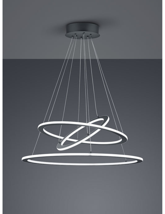 Lámpara colgante LED regulable 3 anillos Durban Antracita Ø80 cm Trio Lighting