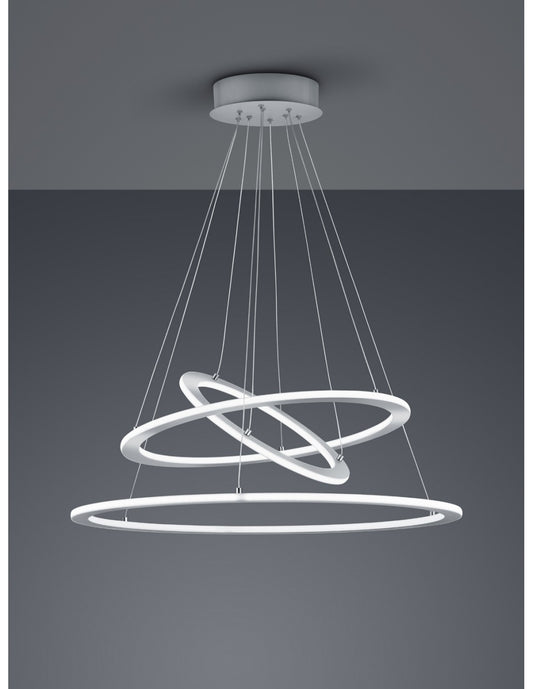 Lámpara colgante LED regulable 3 anillos Durban Níquel Ø80 cm Trio Lighting
