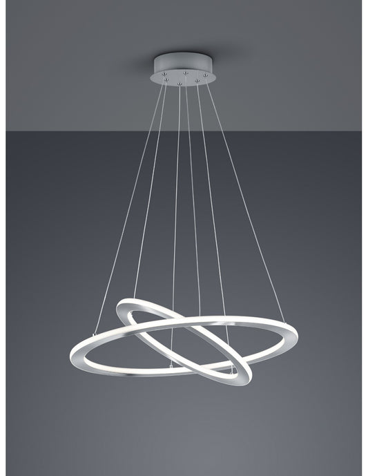 Lámpara colgante LED regulable 2 anillos Durban Níquel Ø60 cm Trio Lighting