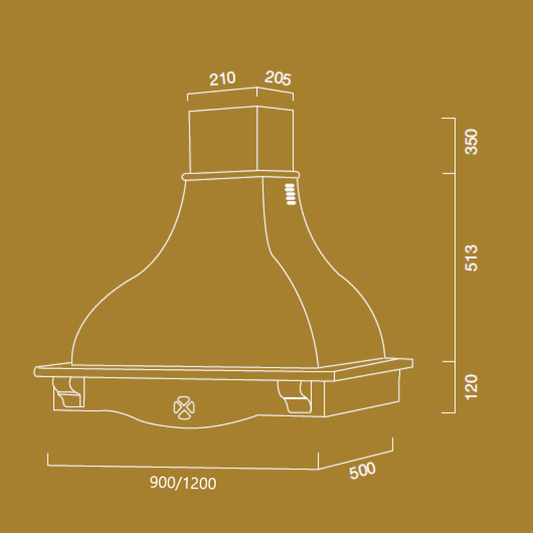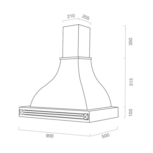 Campana extractora DIAMOND en acero inoxidable cobre antiguo 50 cm