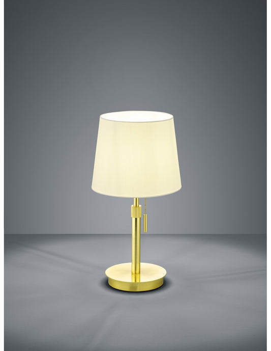 Lámpara de mesa de latón con pantalla blanca Lyon interruptor de tirador Trio Lighting