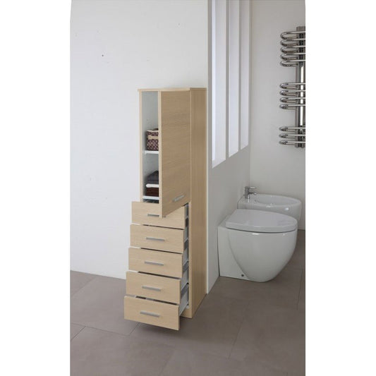 Mueble toallero con puerta blanca y cinco cajones 35x34x h 148,5 cm