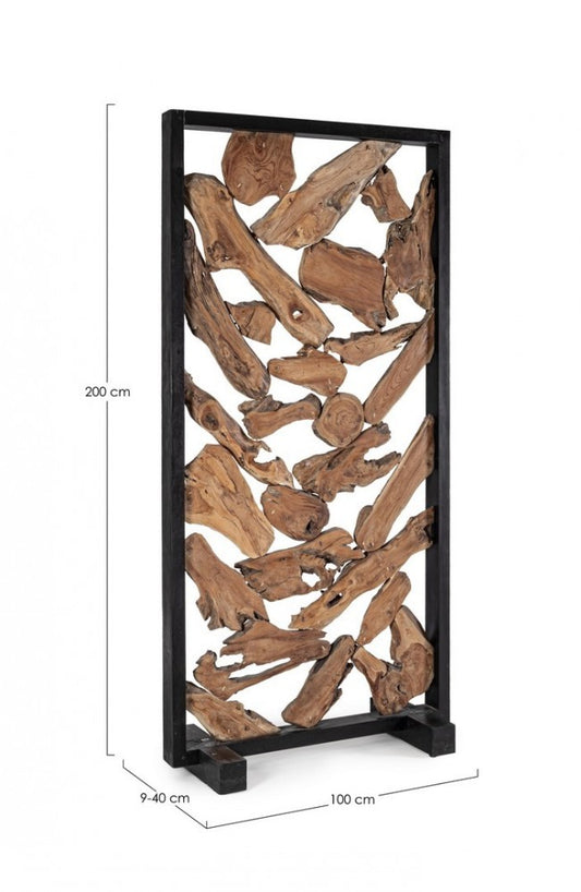 Biombo Aili de madera negra natural 100x18,5x180h cm