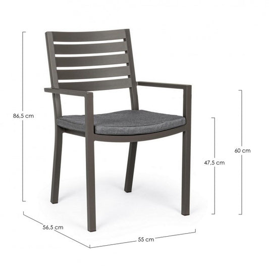 Sillón Cleveland de aluminio y textileno gris tórtola mate cm55x56 x h86