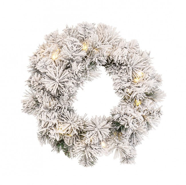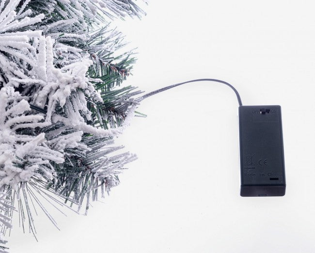 Nevado. Estructura metálica. Material de aguja de PVC. Ramas efecto pincel que reproducen la estructura de las agujas de pino. Con 15 luces LED integradas, color clásico. Funciona con pilas no incluidas.