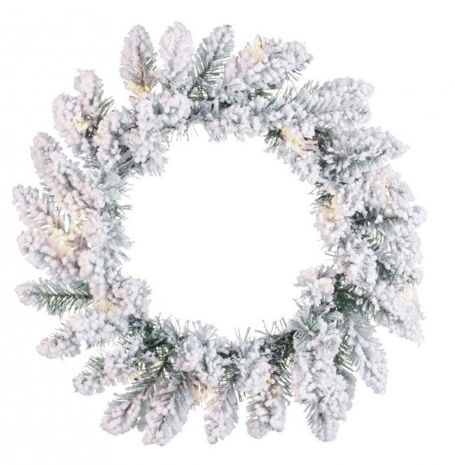 Corona Innevata. Struttura In Metallo Materiale Pvc. Comprensiva Di Luci Led Colore Classic. Funziona A Batteria 2Xaa Non Incluse.