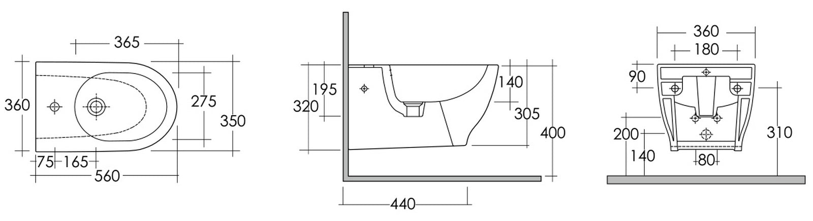 Bidé suspendido Luna