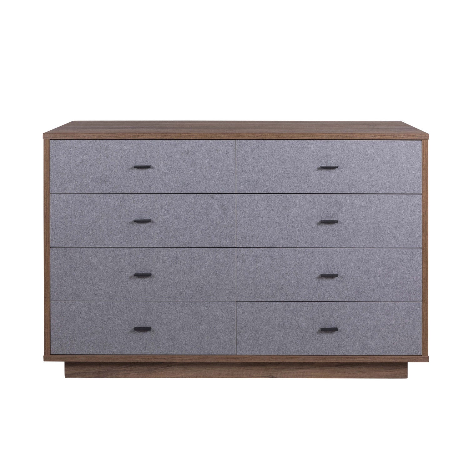 Cassettiera Elegante con 8 Cassetti - Noce/Grigio - 138x89,50x44,40 cm