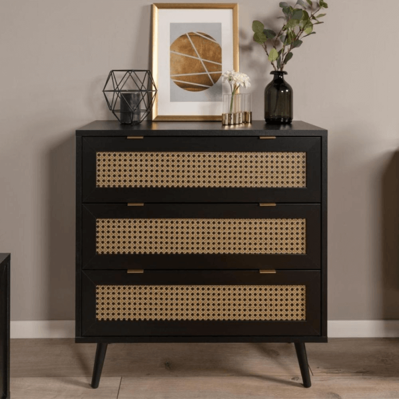 Cassettiera Vienna03A 3 cassetti nera con frontali vimini