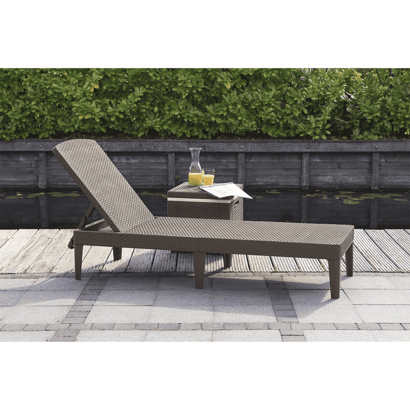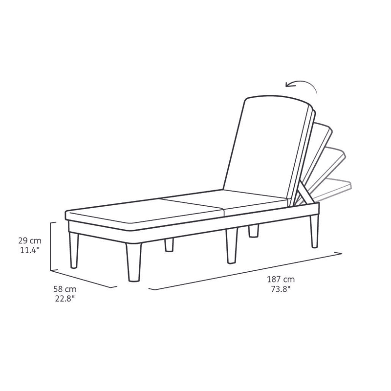 Realizado con un acabado particular que reproduce el típico tejido de ratán, está equipado con un respaldo reclinable en 4 posiciones diferentes.