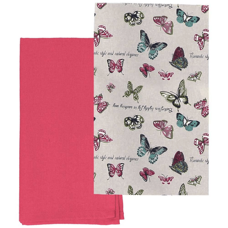- Este juego de 2 paños de cocina, uno liso fucsia y otro estampado, es ideal para la limpieza del hogar y la cocina y completa la línea textil de la colección diseñada para combinar con la vajilla Romance para un total look fresco y romántico. ;