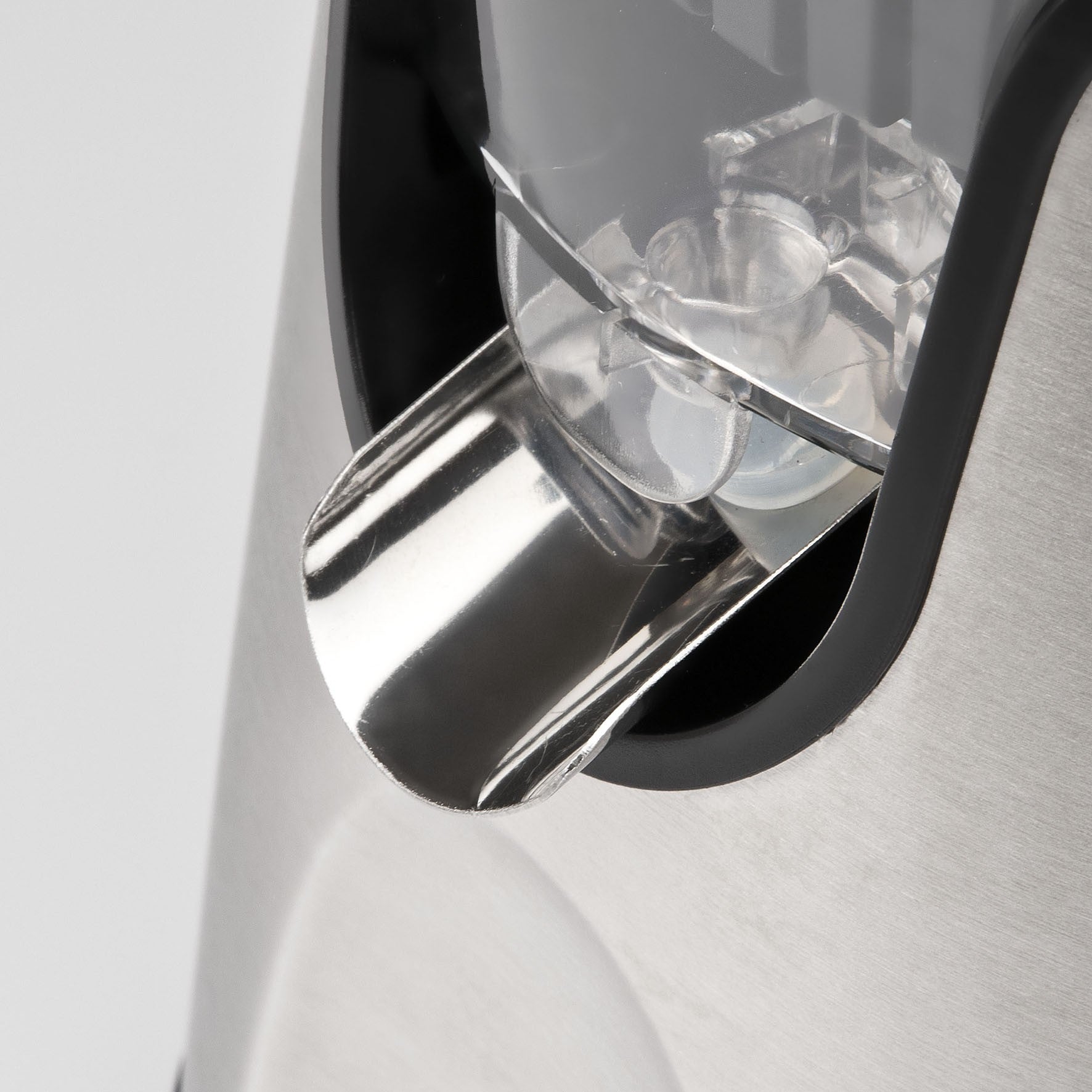 El cómodo brazo permite fijar los cítricos y aplicar presión que activa el motor. La rotación y presión del brazo exprime la fruta, sin que tengas que hacer ningún esfuerzo. Gracias al potente motor de 85W podrás obtener zumos perfectos como en un bar en tan solo unos instantes.