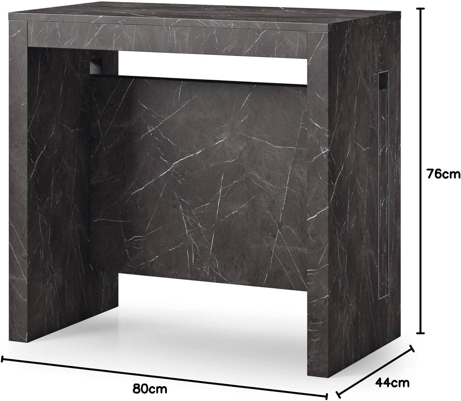 Mesa consola transformable de mármol negro. Se transforma rápidamente de una pequeña mesa de entrada a una sólida mesa de comedor. Realmente útil es el compartimento de extensiones insertado en la estructura, donde podrás guardar todas las extensiones una vez cerrada la consola. Hecho en Italia.
